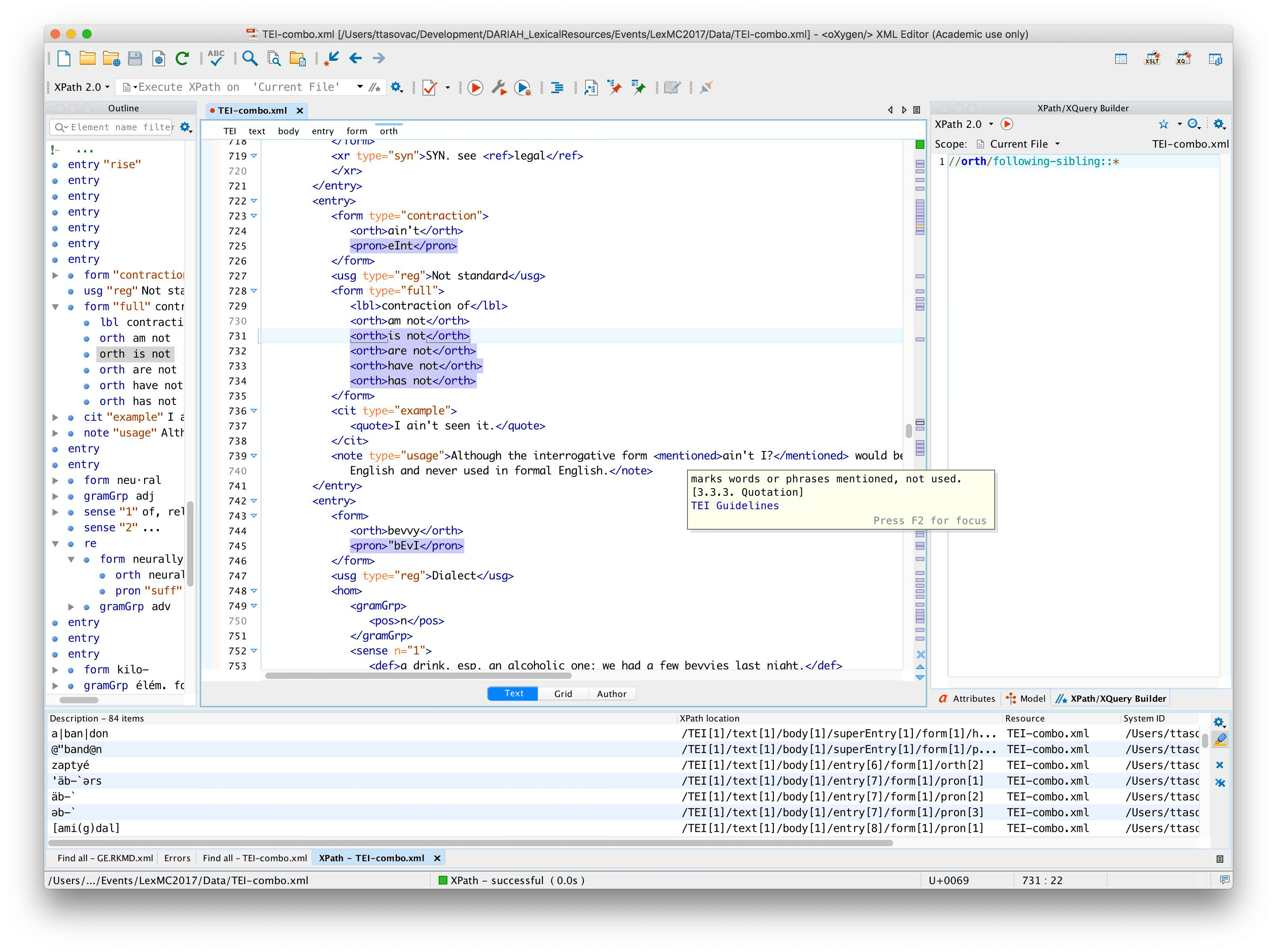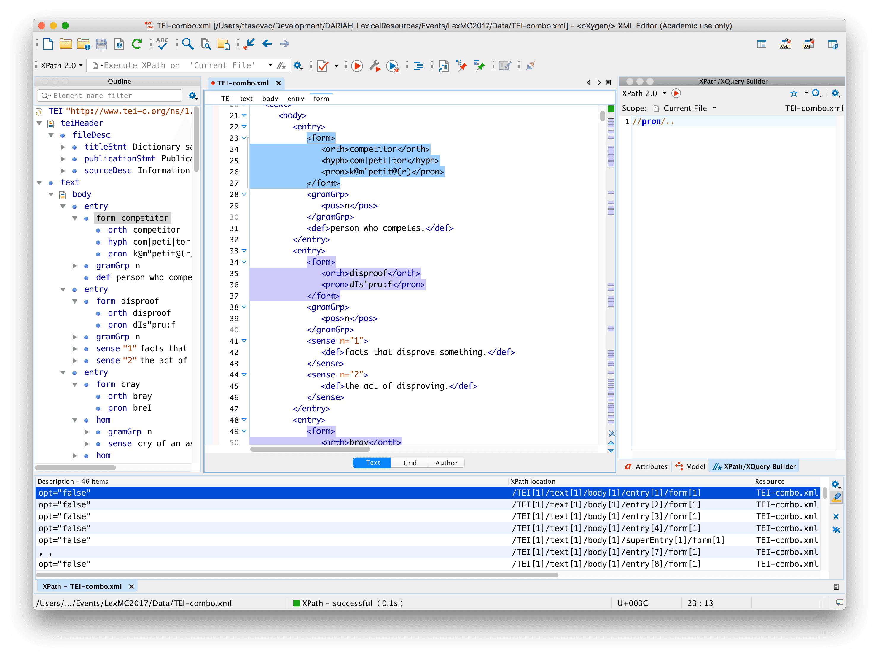 - recognize the advantages of XPath over plain-text search in lexicographic contexts